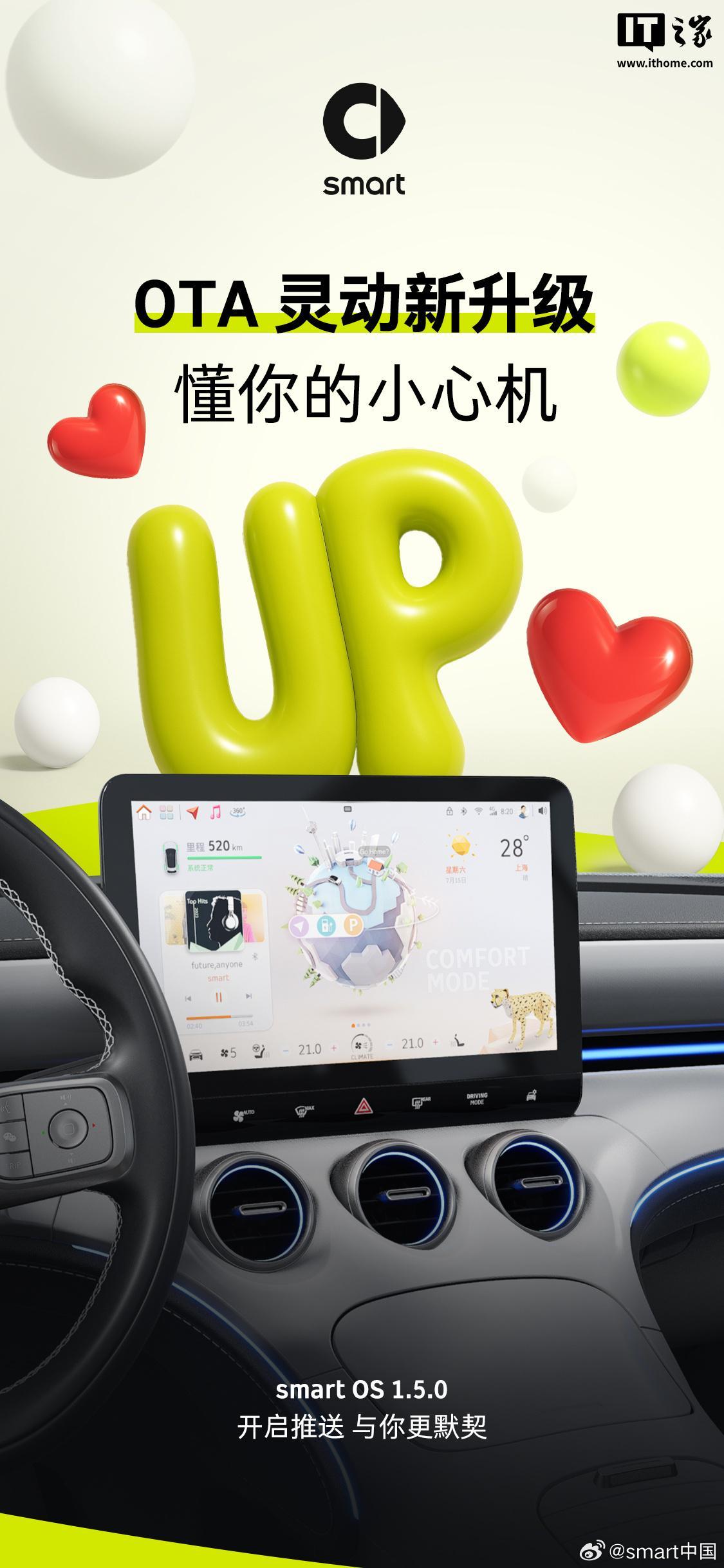 smart品牌近日宣布,为精灵#1与精灵#3系列车型带来了smart OS 1.5.0车机系统的全面升级。此次更新不仅丰富了车辆的功能性,还进一步提升了用户的驾驶体验。